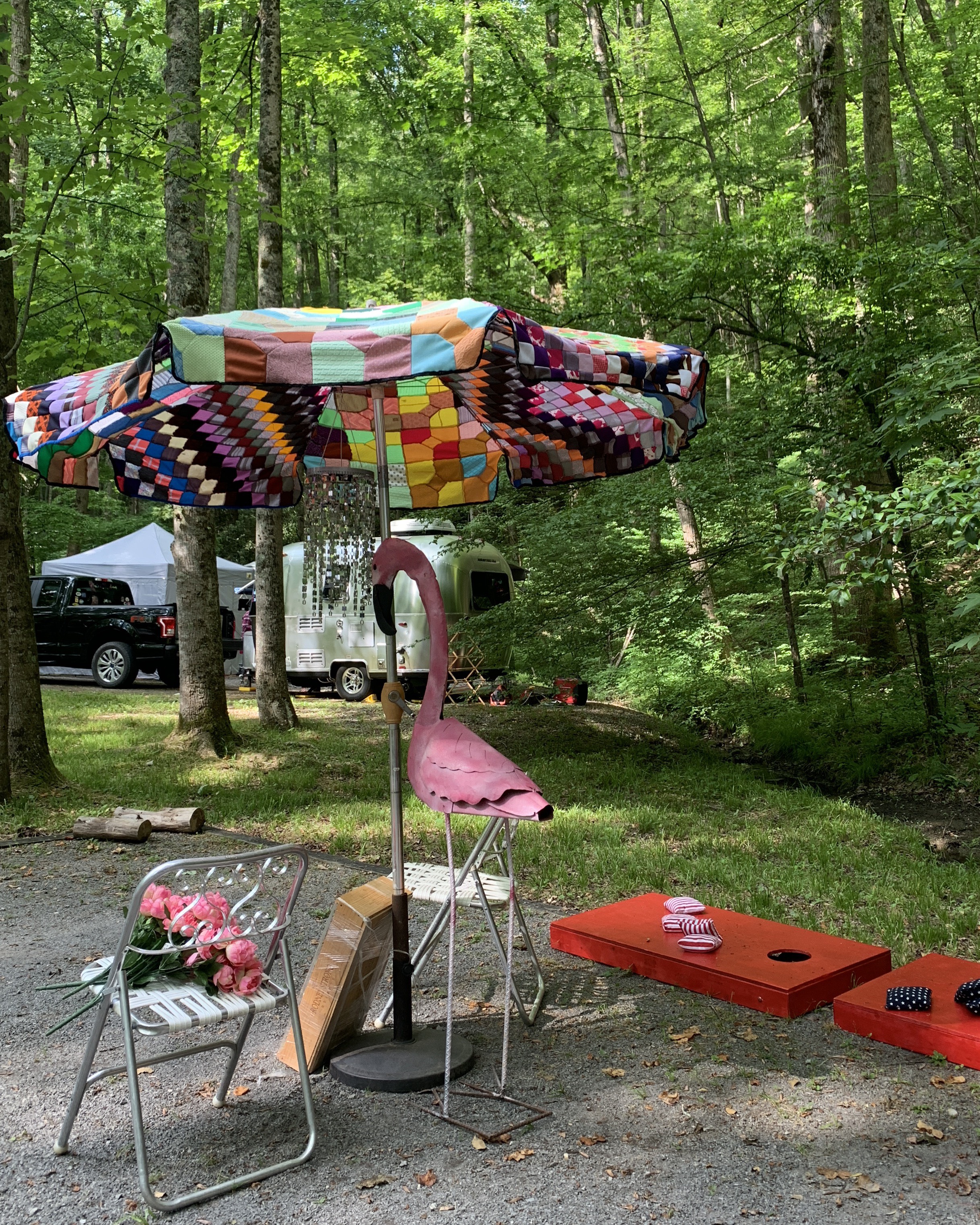 The second unlikely gift that we happened upon were the Sisters on the Fly. We had noticed cute campers with vintage feels and we walked over to get a closer look at a homemade umbrella. The owner of the remade vintage camper had made a cover for her sun umbrella out of two polyester quilts. She came right over and told us all about her passion. She introduced us to Sisters on The Fly which is a club of sorts of women who camp together. They certainly know how to do it up right- painting flowers on their airstreams, adding pottery sinks to a canned ham, and lighting the night with either homemade chandeliers or string lights. They had reserved the week of the fireflies and were reuniting with each other and talking campsites and hookups. Of course, the women we met were retired teachers. Too much time on their hands after retiring but instead of crying in their beer- they found a new hobby. I’m a tiny bit concerned that Mim would be the only black Sister on the Fly so I haven’t rightly joined up just yet. It’s just nice to know that women are finding their passion. Living their dream and that I will, too. And it doesn’t have to involve pilates or marble countertops.