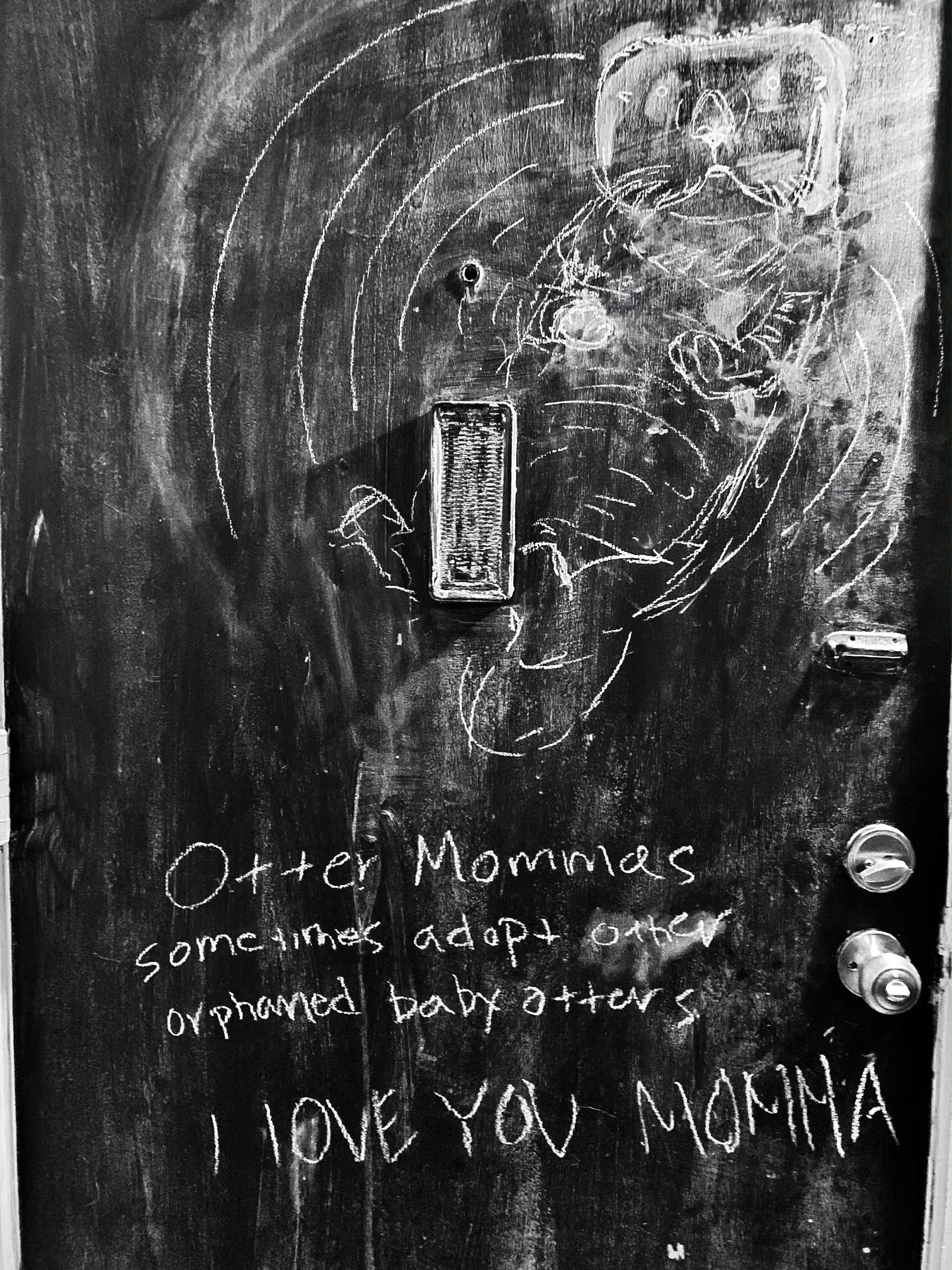 I’m missing my Gidge. It is his birthday and we celebrated yesterday. He left last night for the mountains and hiking to waterfalls with friends. He is 17 today. I’m so lucky he is mine. A lump in my throat. So lucky. He drew me a chalk picture of an otter before he left. He always makes sure I know I am loved.