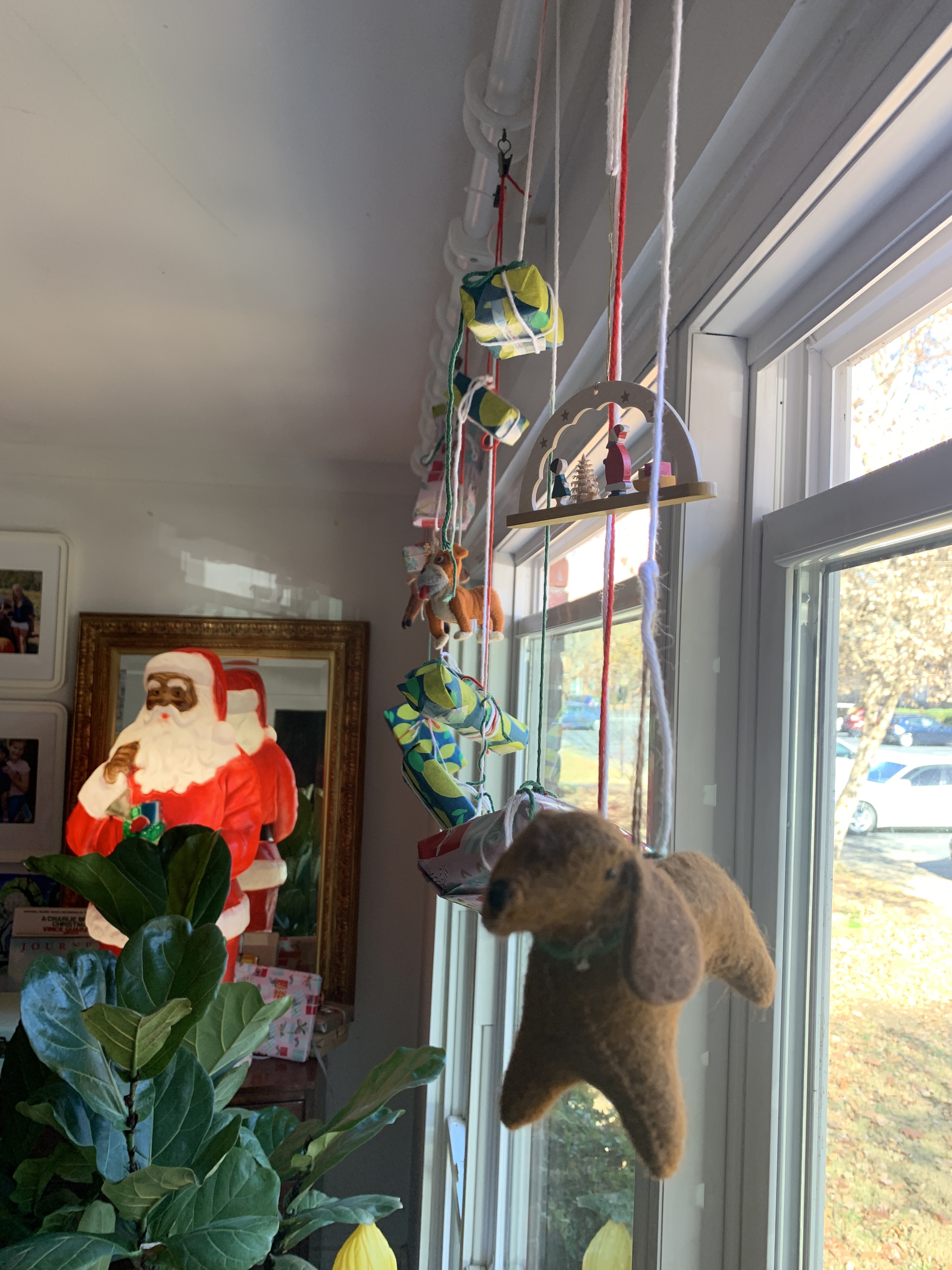 First of all, it is December 1st and I am wrapping my 18th tiny treat for our advent gifts. I’m a little ahead this year. Don’t tell me- you finished your Xmas shopping before Halloween. (I’m not listening.) So I cut some wrapping paper to wrap up a box of Mim’s favorite jelly beans. It is a long rectangular box and I completely underestimated when I cut the wrapping paper. But Supermom to the rescue. Last time I wrapped, I saved a long rectangular piece of the same pink Christmas paper in the knife drawer. The drawer is difficult to open because I have shoved too much in there. The wrapping paper is wedged in the back crack of the drawer but my chubby little fingers work swiftly. I patch the opening and the jelly beans are no longer exposed. Genius elfin magic.