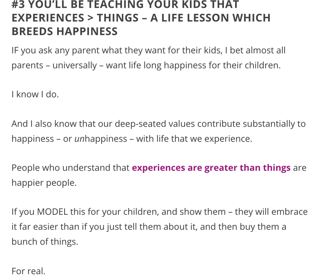 I feel actual rage when you post that instead of getting my child birthday or Christmas presents I should take them on a vacation because experiences are better than materialistic gifts. Oh Gawd- thanks for the enlightenment. I’ll return the Chromebook they need for school that cost $195 and get them a plane ticket, a week of hotels, meals and fees for the rainforest zipline. I wish I had thought of that. I was just thinking what do they need more new cleats for soccer or a laptop for class? Maybe your child can google the answer on her new Macbook. My internet is slow because I am trying to cut back on expenses. I’m sure your googler is faster because you have the best service to find the best deals. (I actually want you to go on vacation and buy your kids stuff and live in a spacious house with speedy wifi. I want you to enjoy your life. I can be envious. Forgive me.) Maybe I need to take a vacation from Facebook. But really the giving advice about how to have a good holiday is over the top.
