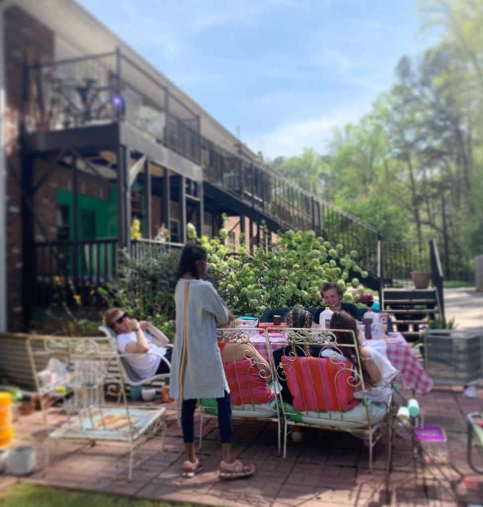 *In the middle of all my difficulty, I stop and I can see the beauty in this photo. Children gathered around a table. Food to eat. A gingham tablecloth. A flowering vibernum. Love in the time of Corona.