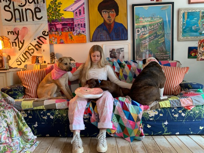 Posey, Linus on Dolly’s lap and Frida