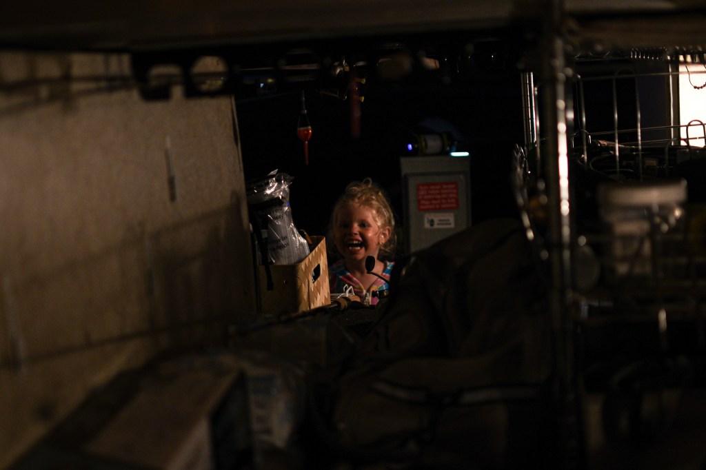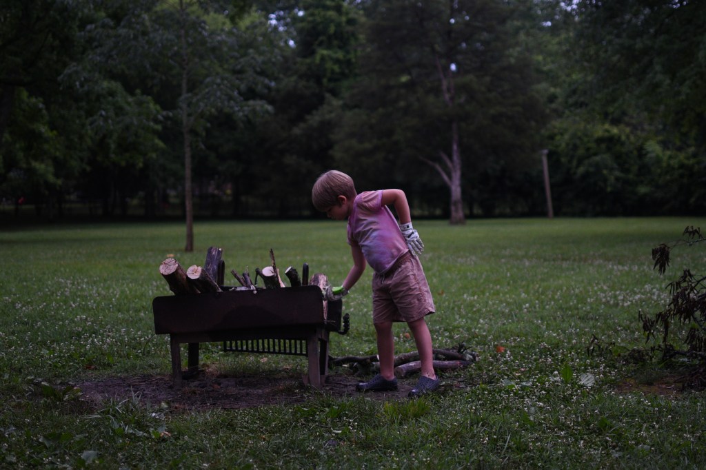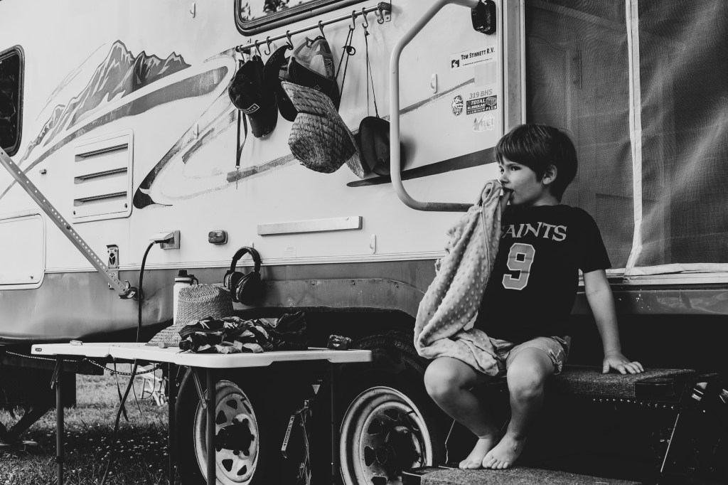 Otis moved to this camper a month ago with his sister, parents, and his dying cat. I love how he is the big brother and a thumb sucker.Willa and Otis could each bring one stuffed animal and they both chose the snoopy I gave them for Christmas. Their mom, my cousin Mesissa, removed the batteries.After a swim in the Old Hickory lake, Willa needed a ride back to the campsite.The shady road had a humongous tree- a three hundred year old god. Otis had taken his training wheels off his bike a few days earlier and he had bicycle fever. I think this is the second shade Willa insisted on breaking.Luckily, Annie stopped by to visit with Foxy. She is planning a move to Kansas City. Now that Mesissa has left the block it just isn’t the same. Mim immediately wanted to be her friend. Nothing better than a fire and some baseball gloves.This is a scene in my movie. It will never play in theaters but it is a beaut.A two year old smiles this big when she is where she shouldn’t be. Her dad was draining gray water tanks and using tools from this camper storage area, which lies under the parents’ bed. Willa was “helping.”