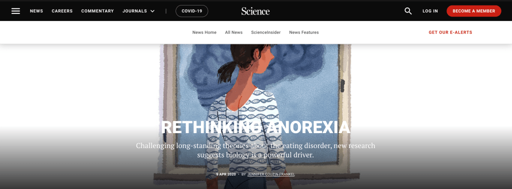 I’m not shocked to see that biology is driving the development of anorexia. As discussed in the article, tons of people want to be extremely thin. Society tells all of us that thin is the ideal. We spend billions of dollars on diets and weight loss- non fat food, pills, apps, gyms, wraps, cosmetic surgery… It blows the mind of a mom whose child has anorexia. It is pervasive. It permeates our days even for babies- too much milk, too much weight gain. It creeps into every holiday or it stomps into every holiday like a giant. No matter what we spend or how much we want to be extremely thin, most of us do not develop anorexia. The thin ideal, our culture does not drive the development of this disease. Biology drives the development of anorexia.