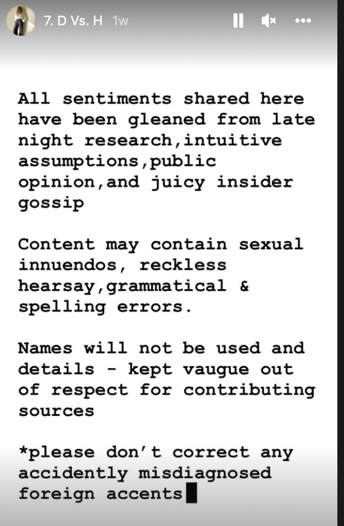 I know it is instagram, not reality. I do not actually know her. If you need some entertainment and Johnny Depp go kill some time and watch her stories. I am holding my breath because she said something about a full report on the whole case Sunday. As in, this Sunday.