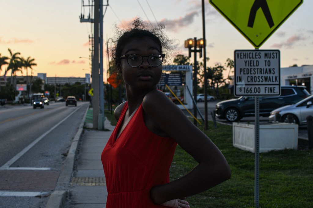 Mim doing exactly what she wants- wearing a fabulous maxi dress from Marshall’s and sneakers, waiting for the free trolley after having mocktails and Caesar salad.